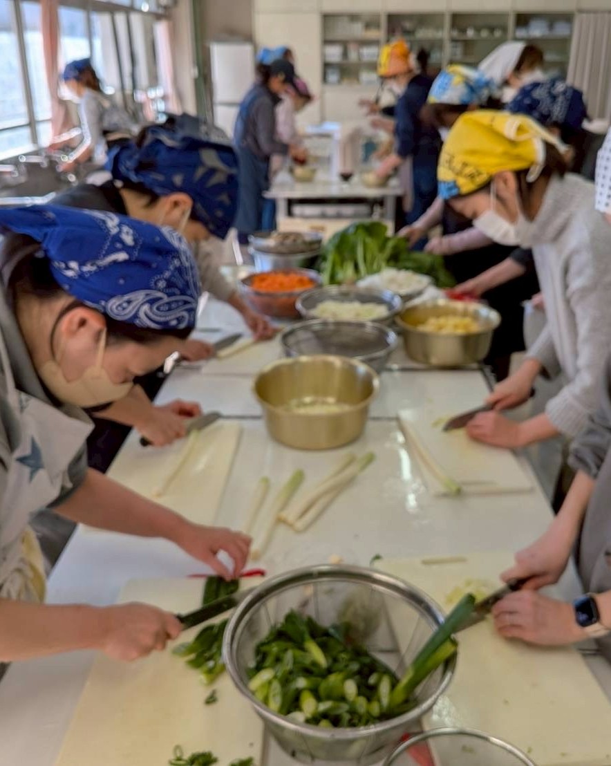 2025年3月1日に約140名が参加して餅つきを行いました。餅をつく威勢のいい音がピロティに響き渡る中、つきたてのお餅と雑煮を味わいました。5,6年生の希望者は杵を持って餅つきを体験しました。